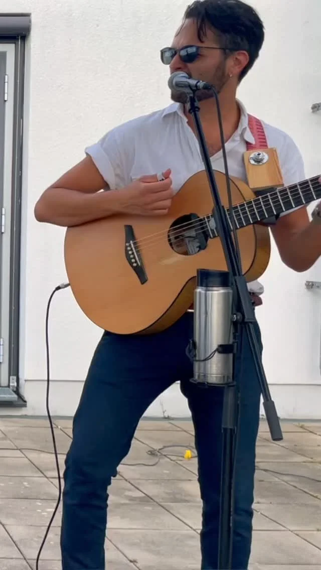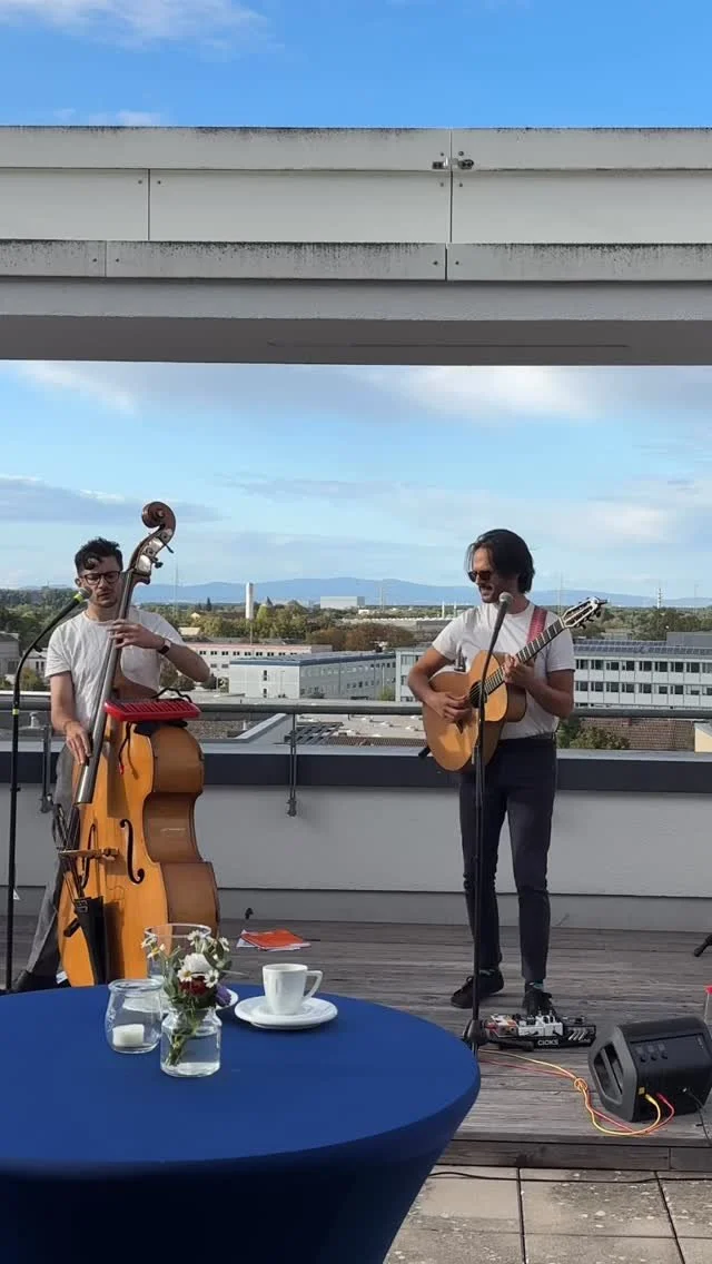 Klassisches Setup: Gitarre, Kontrabass und Gesang –wir können an einem Ort bleiben und Ihre Partybandseinoder ganz mobil sein, sich bewegen und Gästemit Songs on the fly unterhalten